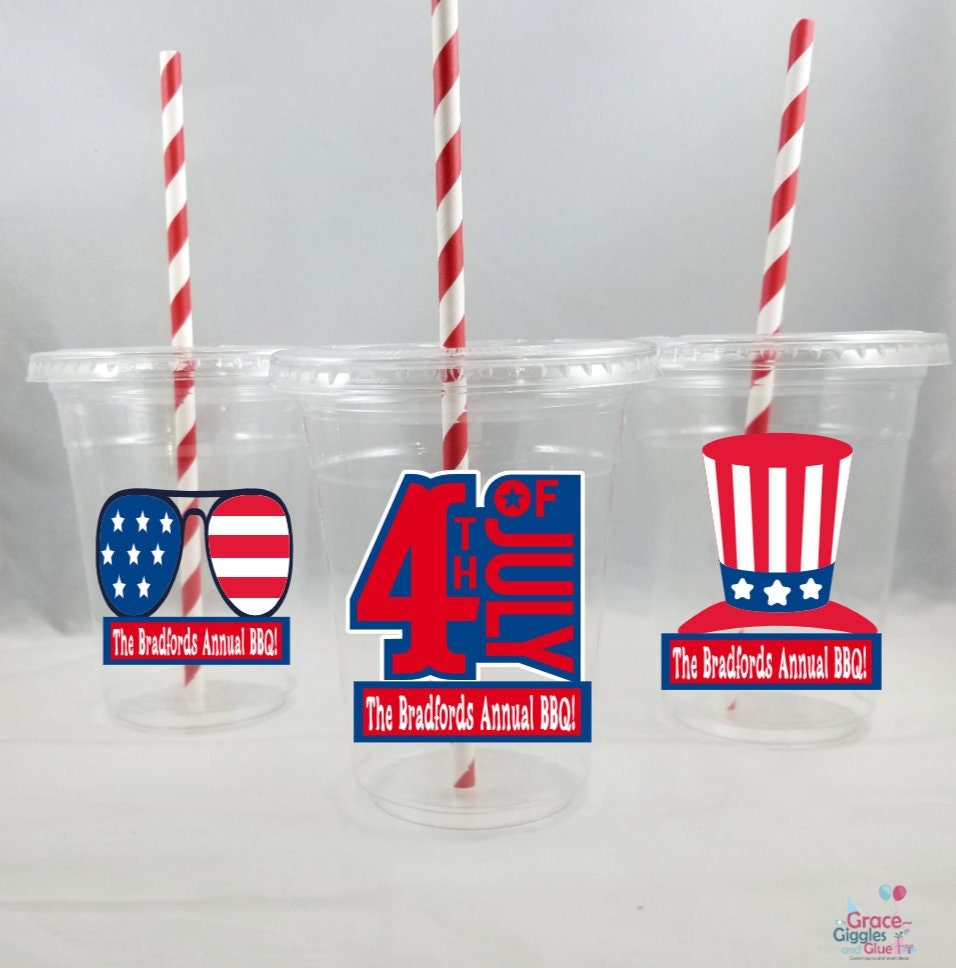Personalized 4th Of July Themed Party Cups With Straws And Etsy
